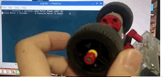 用SimpleBot的配置运行LEGO-Motor_Power.py,转动PORT_C的轮胎,可以看到PORT_D的轮胎得到了相当于PORT_C轮胎Encoder度数1/10的Power,效果如图。